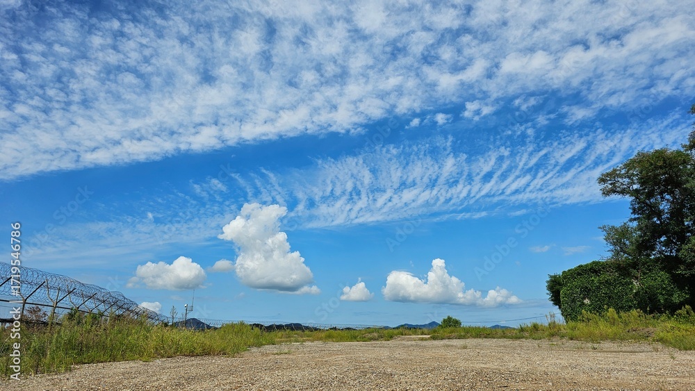 Blue sky with clouds over field 푸른 하늘과 들판 위의 구름