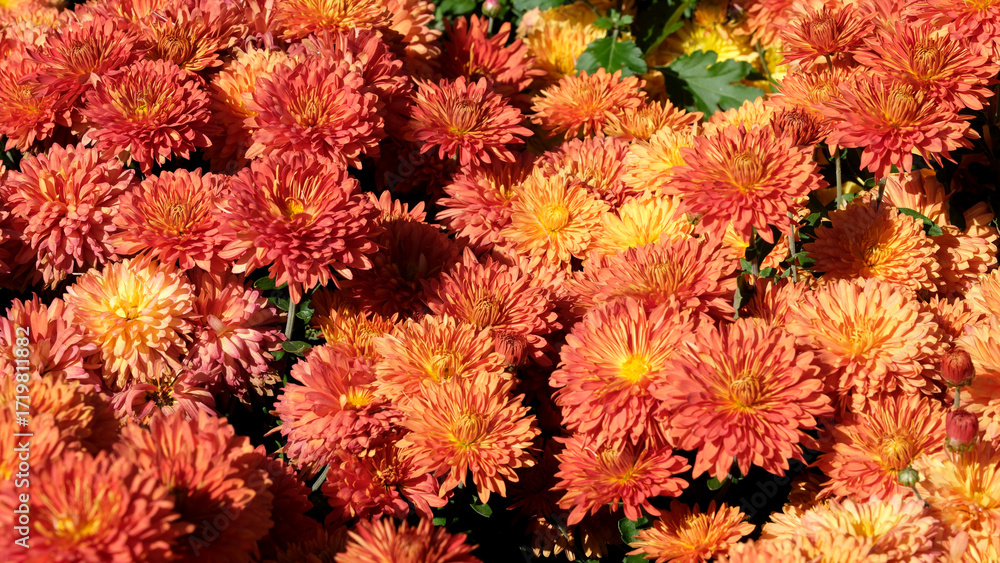Vibrant orange and yellow flowers blooming in a sunny garden setting