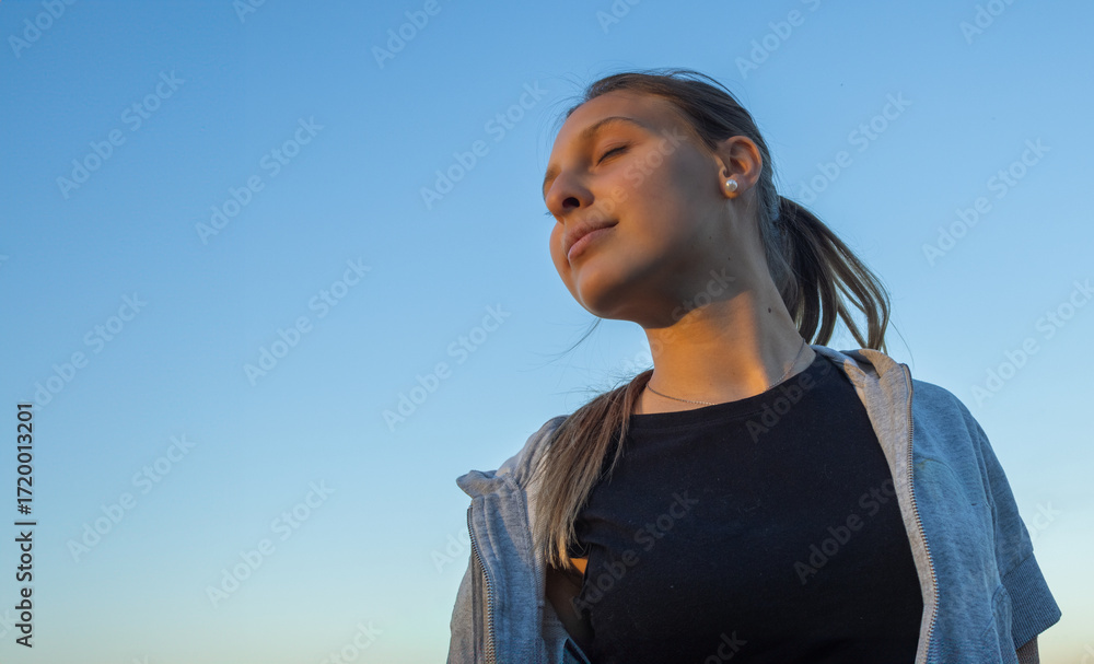 Teenage girl spending a relaxing time in nature, balance, harmony and well-being