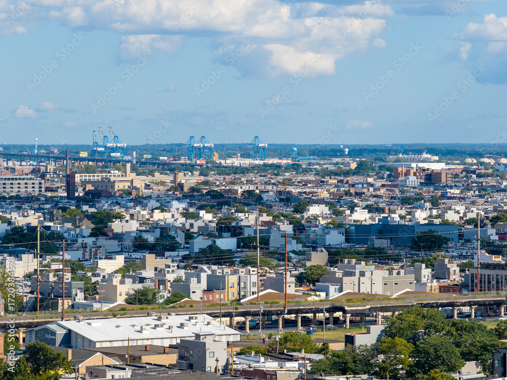 Aerial shot of apartments, homes and office buildings in the skyline in Philadelphia Pennsylvania USA