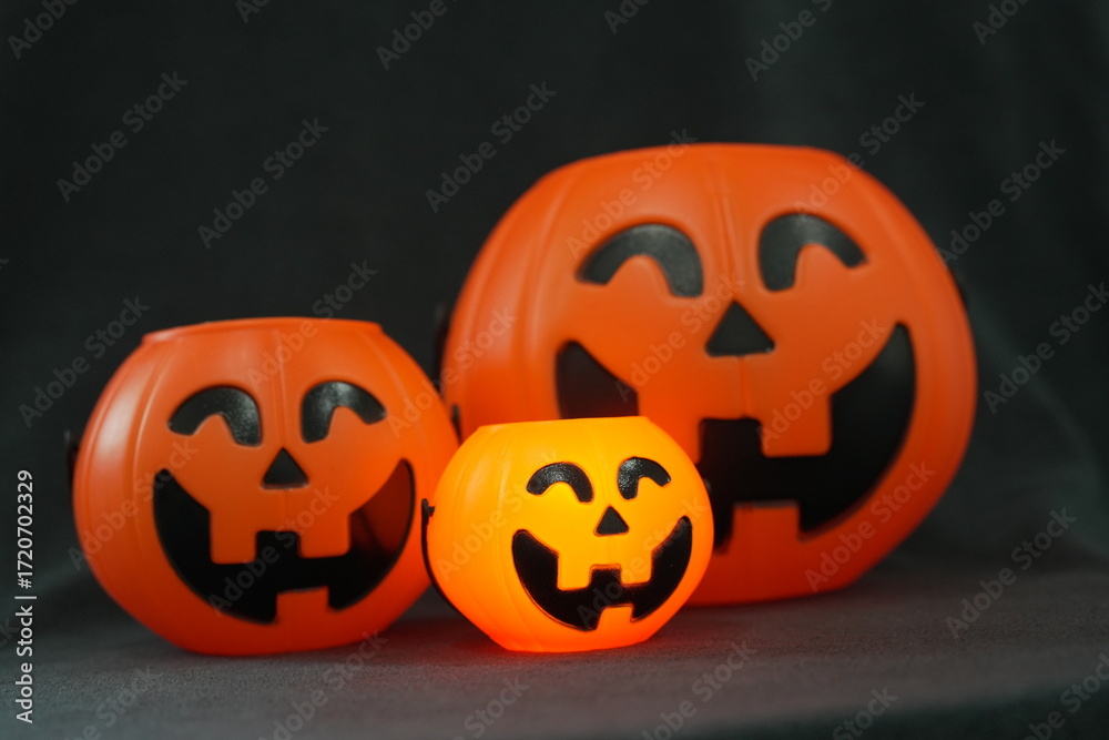 Small, medium and large Halloween toy pumpkins are fun to display. The bright orange color and carved pumpkin faces create a festive and festive atmosphere, perfect for seasonal decorations.