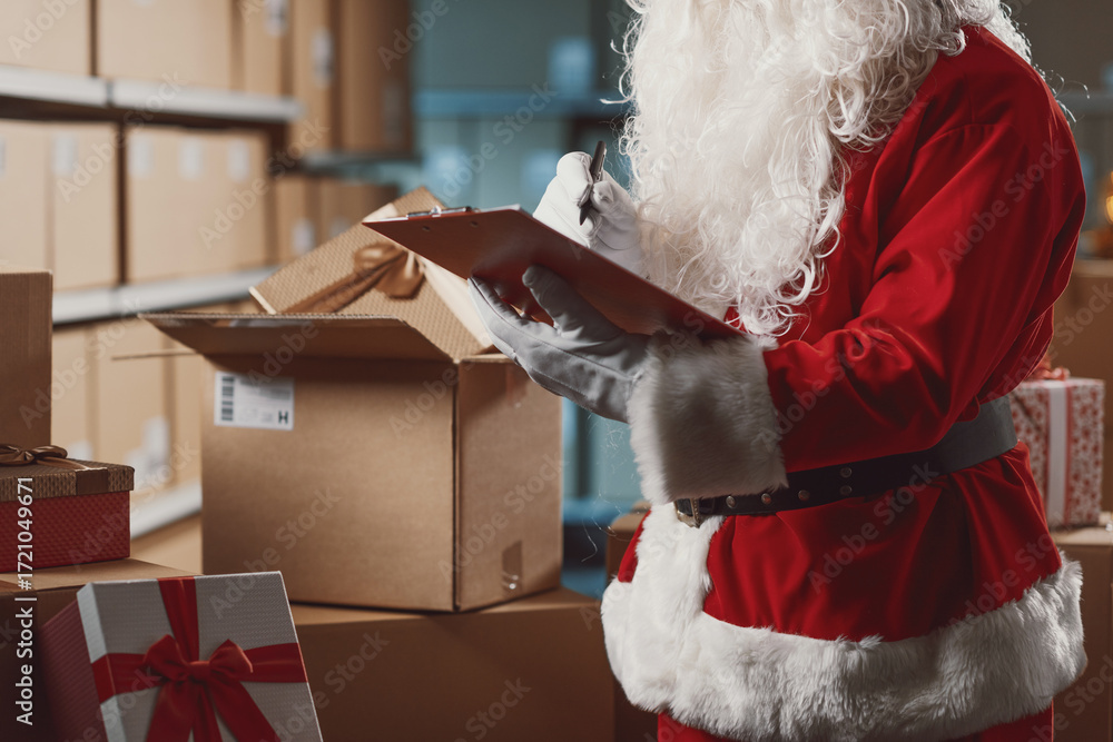 Santa Claus working at the warehouse