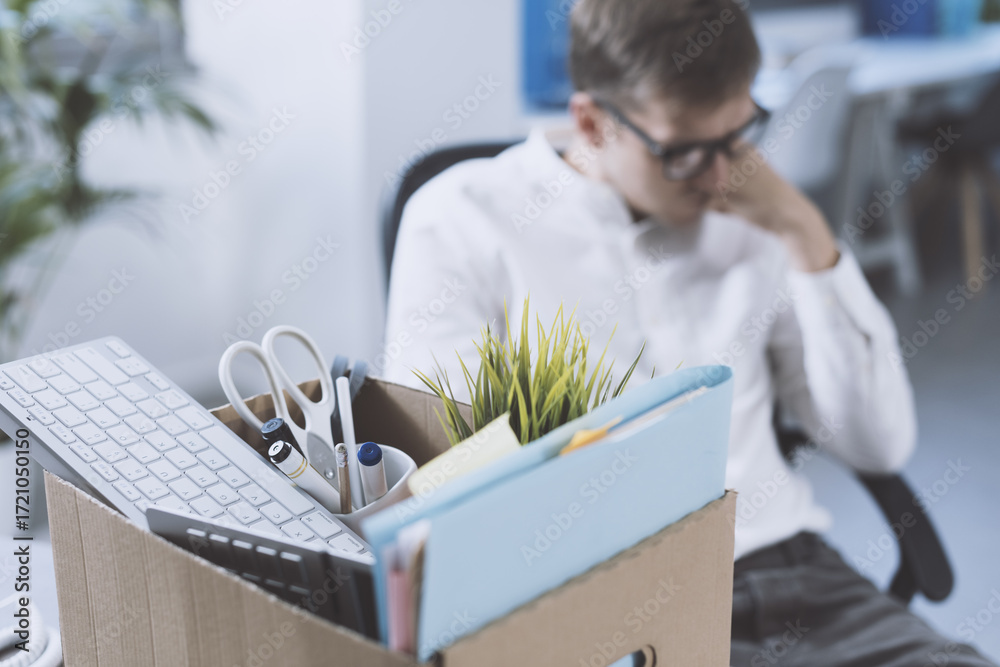 Fired office worker leaving the office