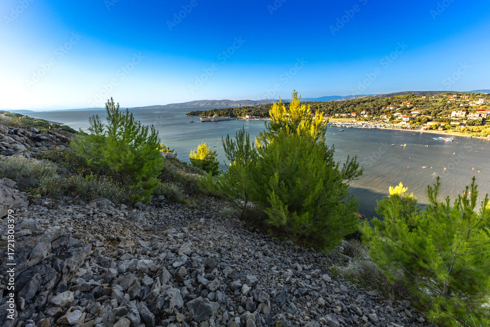 Panorama of the town of Lopar, view of the port of Lopar from a nearby peak, Rab