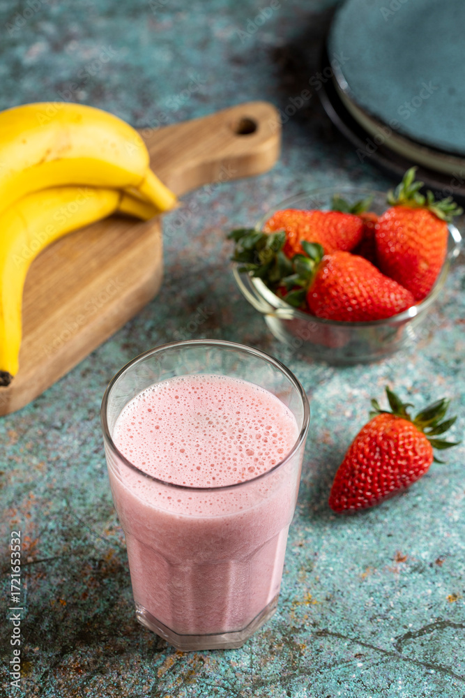 Strawberry, banana, and milk smoothie. Strawberry and banana vitamin.
