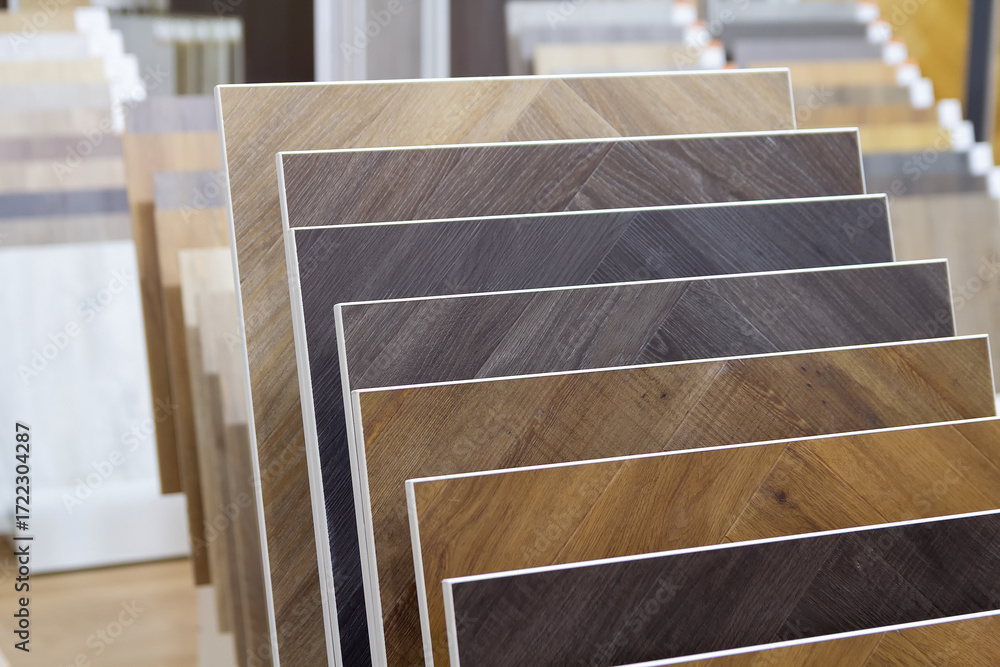 Samples of modern flooring in the showroom