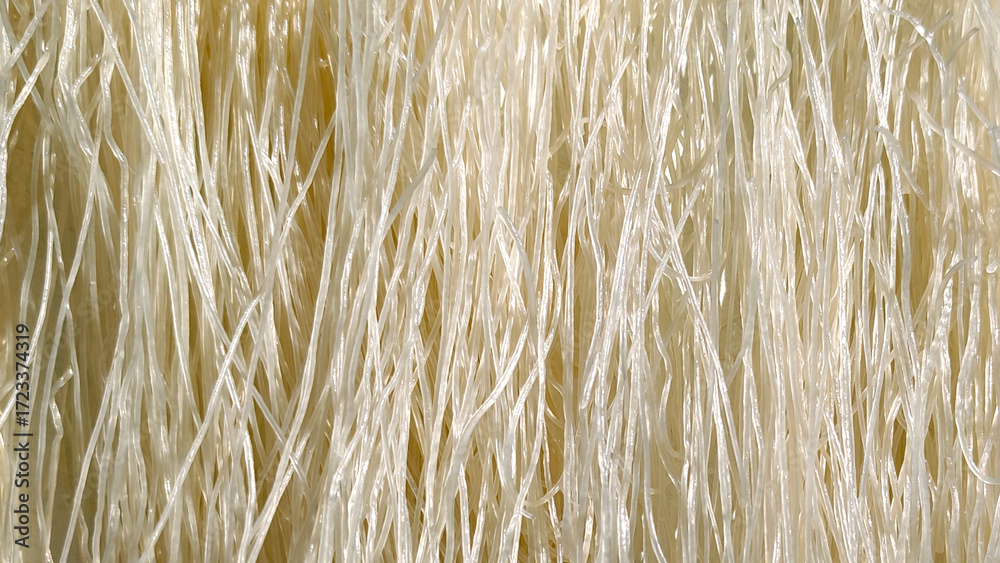 Dry or raw noodles pattern. Chinese, Asian noodle food. White Mixian rice noodles background. Restaurant concept.