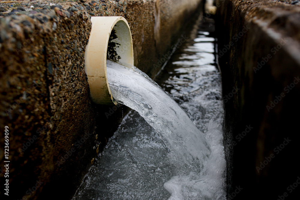 Wastewater Discharge from Industrial Drain Pipe into Sewer System