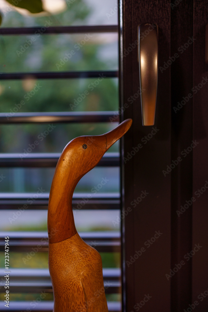 gęś próbujaca otworzyć okno