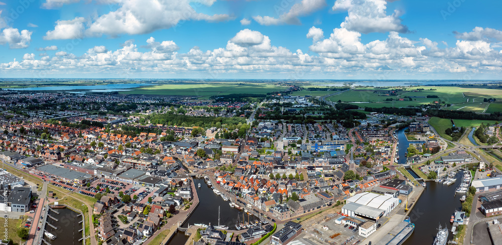 Aerial panorama from the historical city Lemmer in Friesland the Netherlands