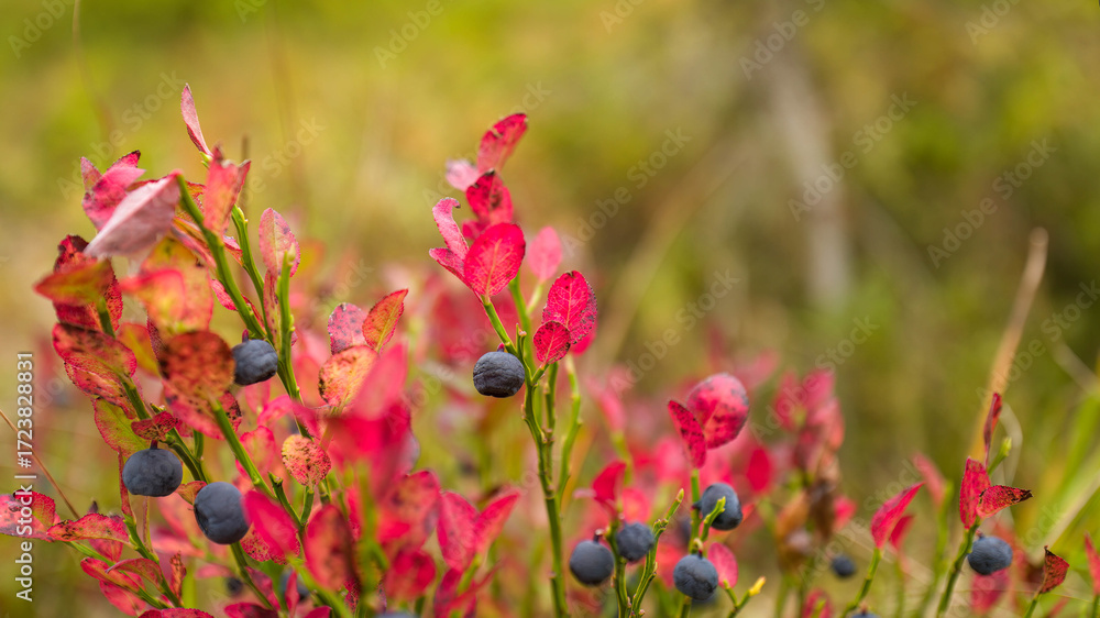 beautiful colors from the blueberries and the leaves at a autumn day on the mountains