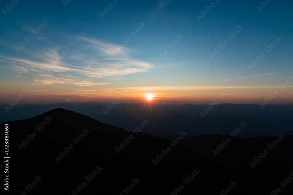 Mountains during sunrise. Beautiful natural landscape in the spring time.