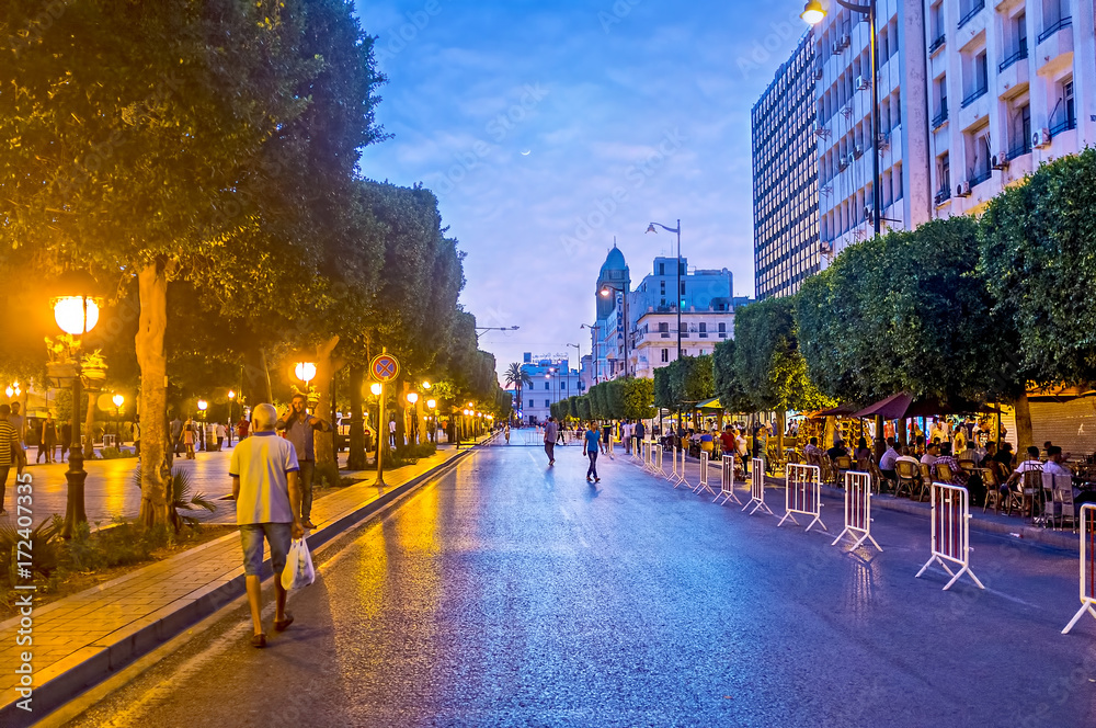 Street restaurants in Habib Bourguiba Avenue in Tunis