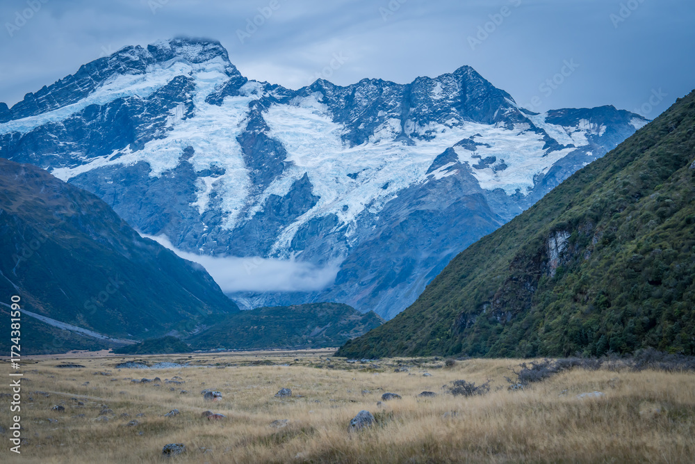 trekking rout where we can see turquoise lake ,snow cap mountain , Glacier ,iceberg ,beautiful Aoraki mt. Cook Hooker Valley track and Tasman lake glacier South Island New Zealand