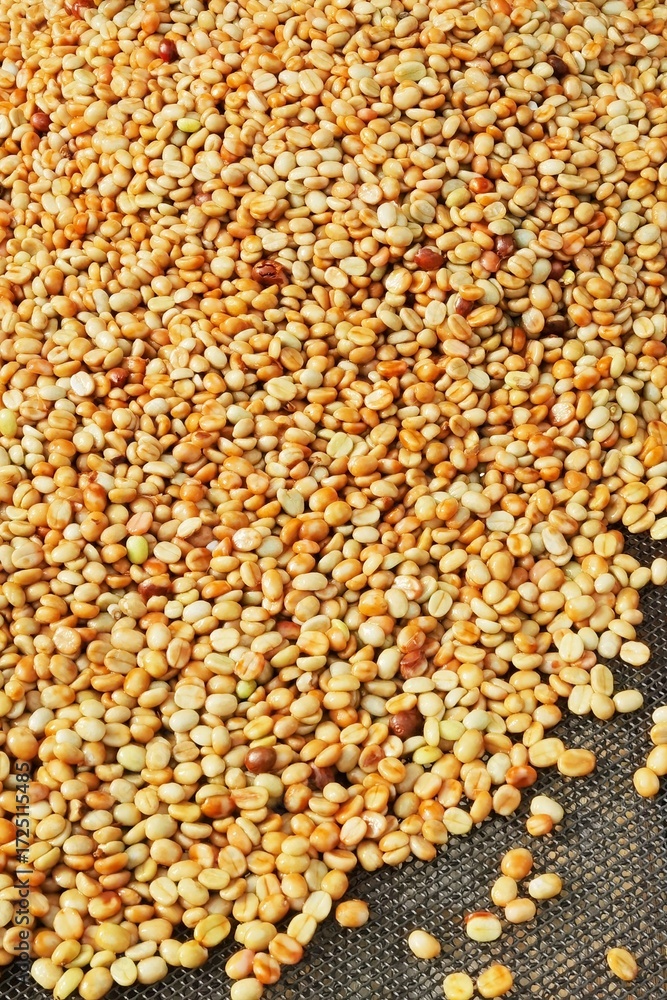 Close up of coffee beans drying in the sun