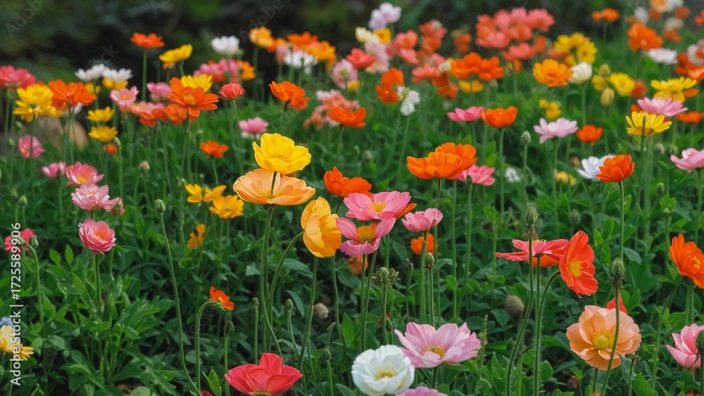 Serene beauty of blooming poppies and ranunculuses, perfect for nature blogs, seasonal campaigns, garden themes, or wellness-inspired designs...