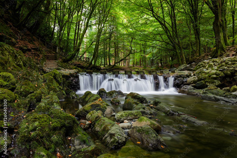 A stream flowing through the forest mountain in Northern Ireland