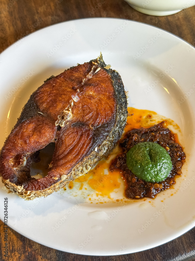 Grilled fish served with sambal and lime is a signature dish from Mak Beng Sanur, Bali.