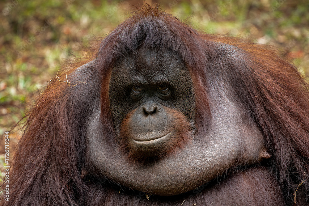Close-up portrait of a Bornean orangutan (Pongo pygmaeus).