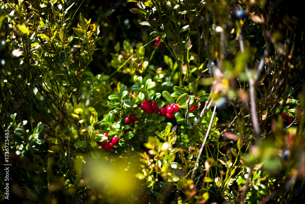 the harvest of delicious cranberries at a sunny autumn day