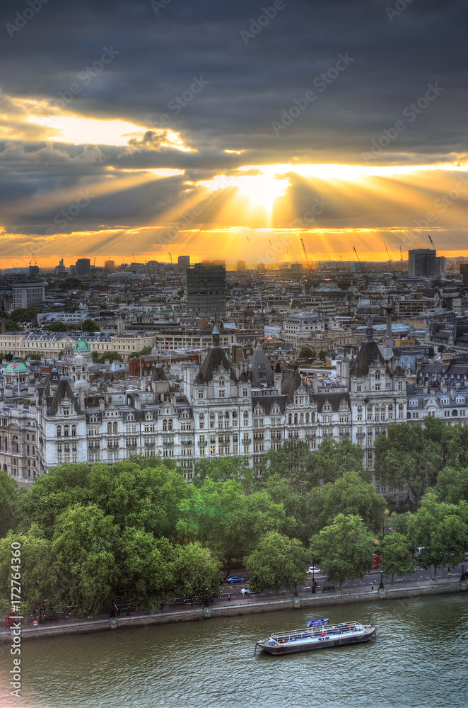 London Skyline landscape with Big Ben, Palace of Westminster, London Eye, Westminster Bridge, River Thames, London, England, UK...