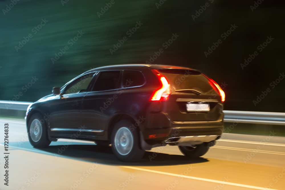 car moves on the night highway