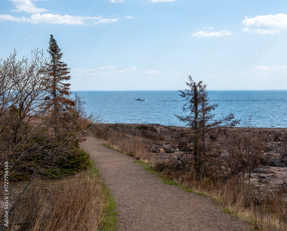 Two Harbors pier or jetty on the North Shore of Lake Superior in Minnesota is a concrete and rock structure that protects Agate Bay.