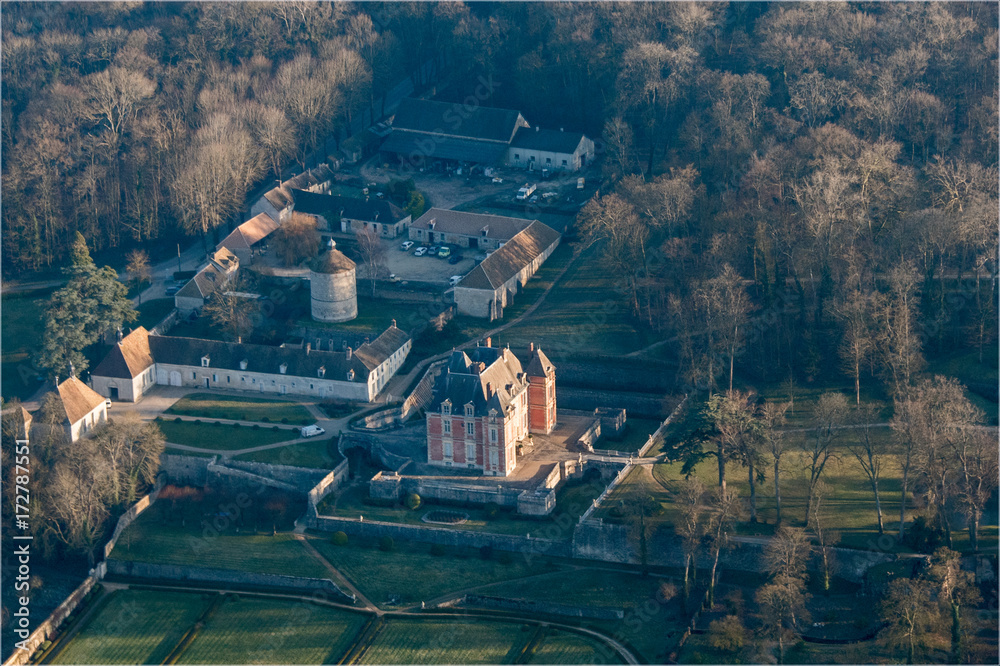 Vue aérienne du château de Rosay à l'ouest de Paris