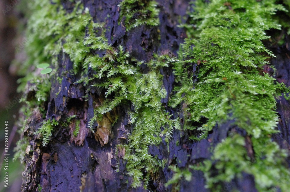 茨城県御前山。苔が見たくて出かけた。古くから人の手が入った森。樹齢数百年の杉の大木がそびえている。一歩、足を踏み入れると、そこはもう深淵の森。山の神が住む森。足元には、しっとりと水分を含んだ深い緑のじゅうたんの苔。ルーペを出して覗いてみる。そこには日常とはかけ離れた別世界が広がっている。ふと枯れた苔を見つけた。私の心に不安な気持ちが湧いてきた。