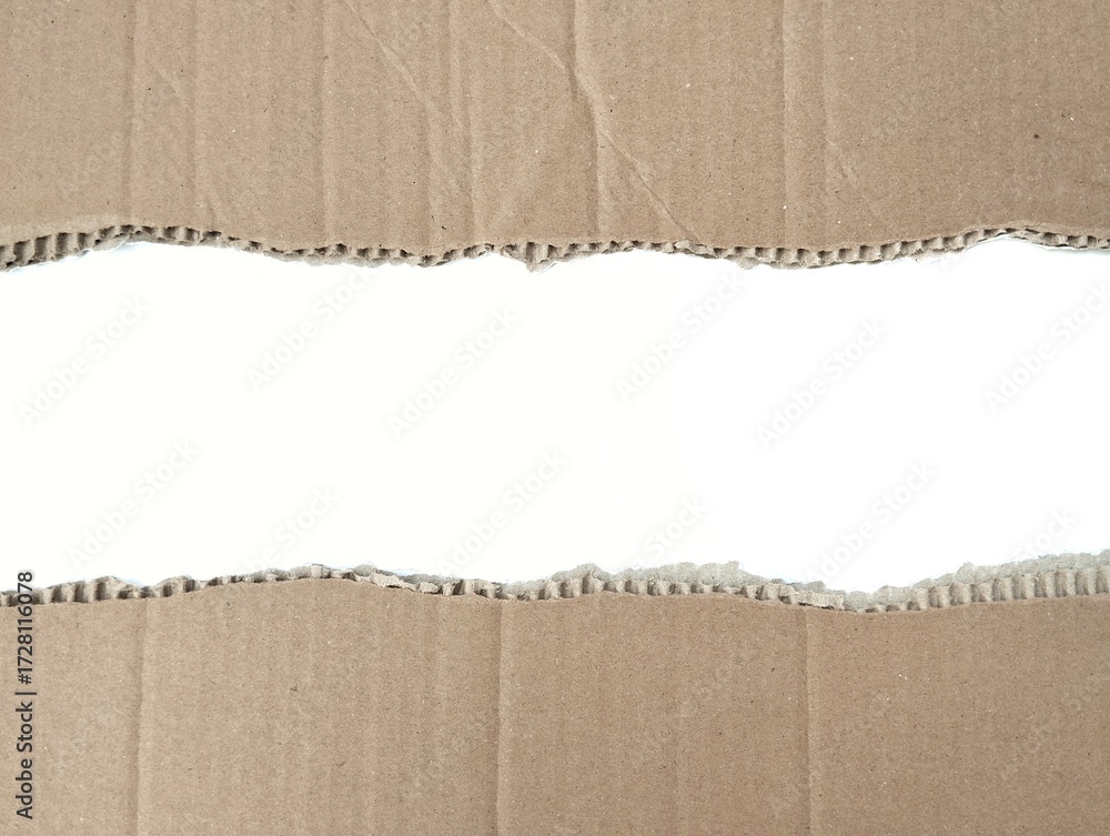 Brown ripped torn cardboard edge strips isolated on white background. Copy space