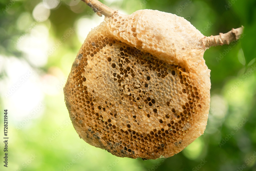 Beehives in natural, Beehives on branch with green blurred background of nature.