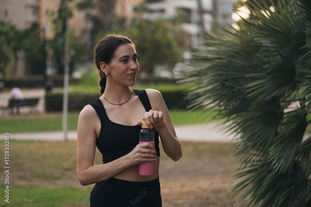 Woman hydrating after outdoor fitness workout