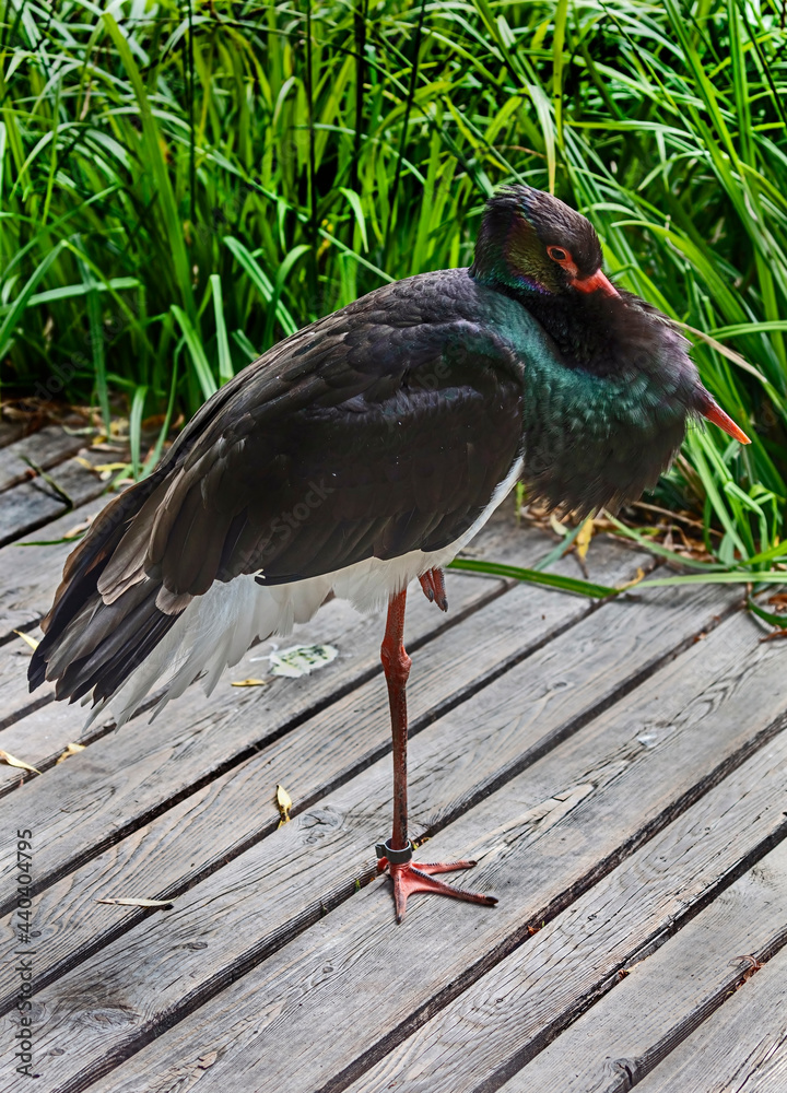 Interior of a modern warehouse storage of retail shop with pallet truck near shelves.
