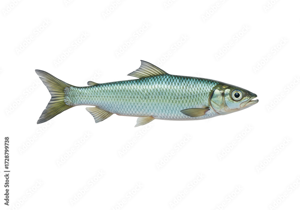 Isolated Silver Mullet fish swimming, marine wildlife, seafood, ocean life, animal closeup
