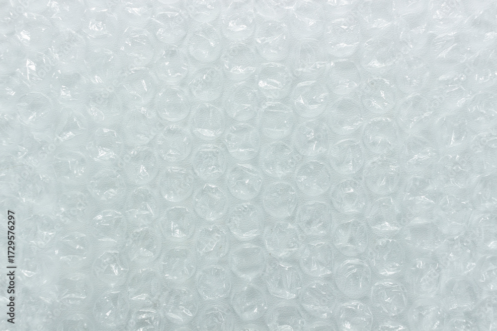A full-frame, close-up, and uniform texture shot of transparent plastic bubble wrap, serving as a protective cushion or packaging material.