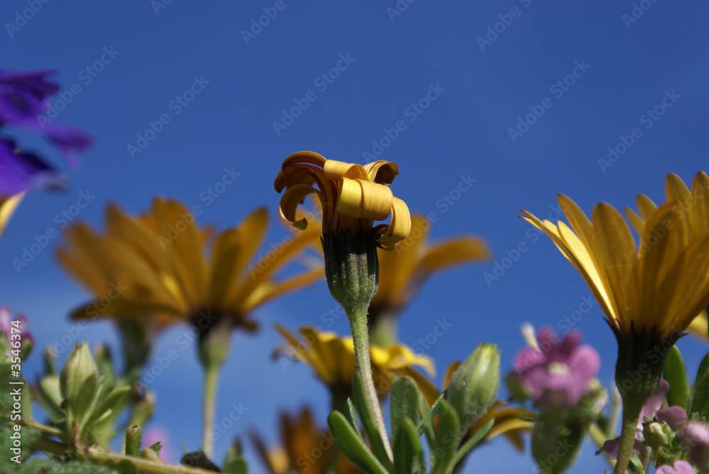 Silhouettes of three F-35 aircraft against the blue sky and white clouds