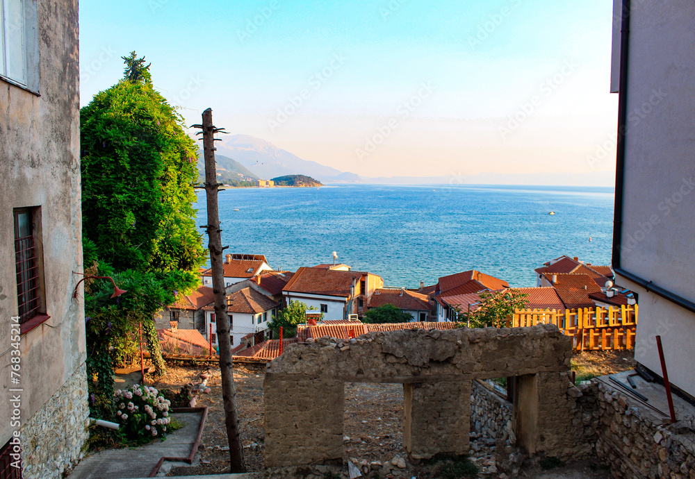 Powerful concrete weir dam with cascading white foam waterfall and turbulent water flow creating dramatic spray and bubbles. Hydraulic engineering, water treatment and renewable energy concepts.