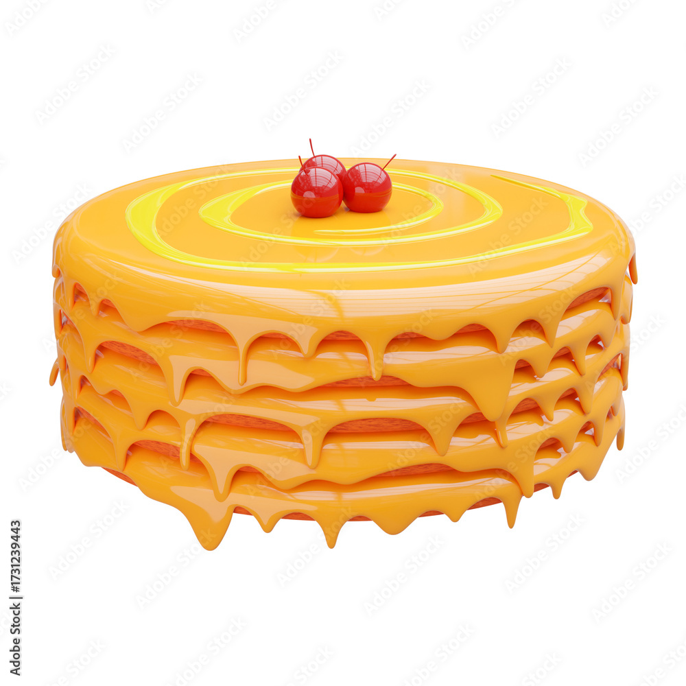 Layered Orange Cake with Cherries on Transparent Background Studio Shot