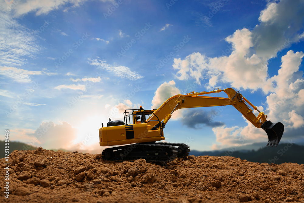 Crawler Excavators with are digging the soil in the construction site on the sun and sky backgrounds