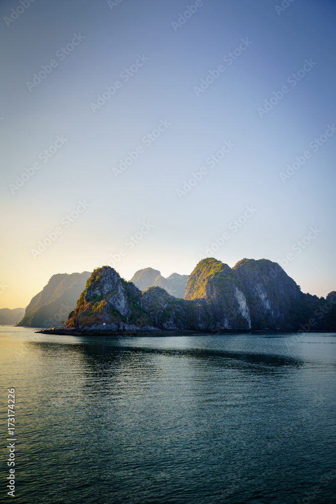 Halong bay dramatic landscape with karst islands. Ha Long Bay is UNESCO World Heritage Site and popular tourist destination