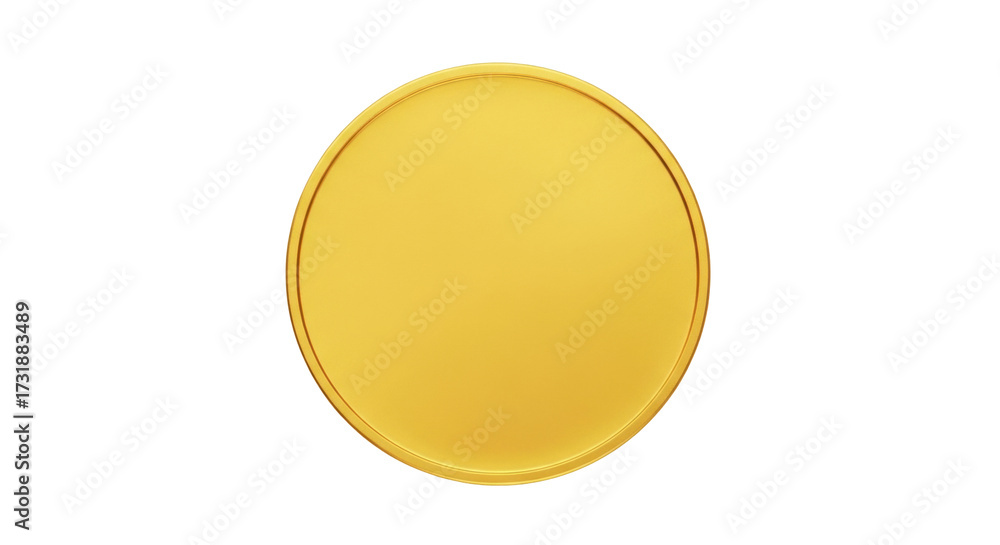 Isolated plain gold coin object. Shiny, simple, precious treasure or token concept