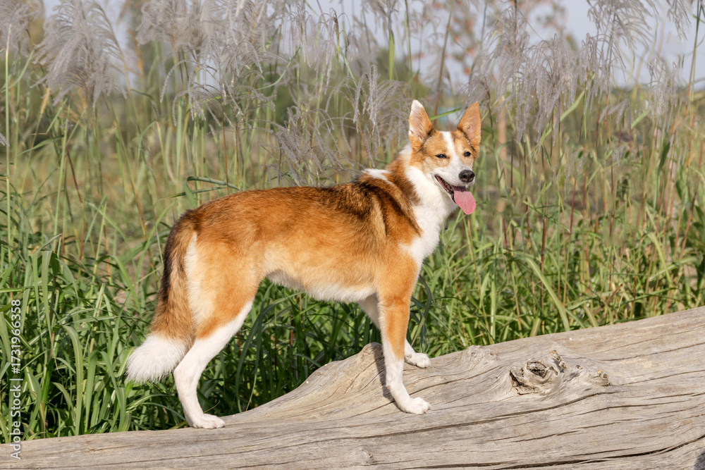 Mixed Breed Dog in Natural Reed and Grass Environment