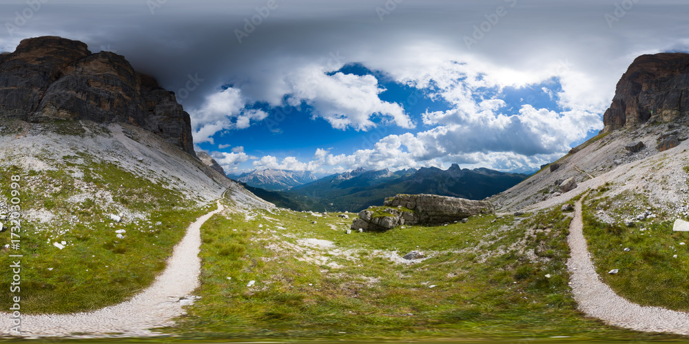 Hiking at Passo Falzarego - Cortina d'Ampezzo - Italy - Equirectangular 360 degree landscape