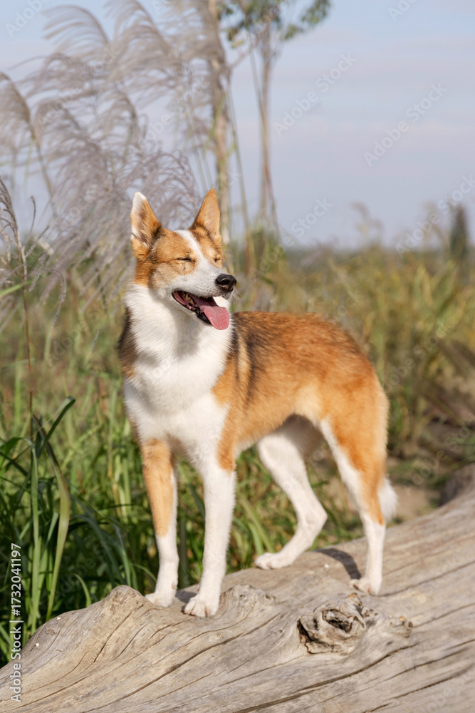 Mixed Breed Dog in Natural Reed and Grass Environment
