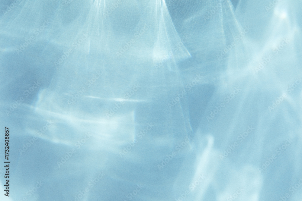 Abstract shadows blue background from pouring sunlight from glass. Natural caustic background from light glare and shine reflection effects for product presentation.