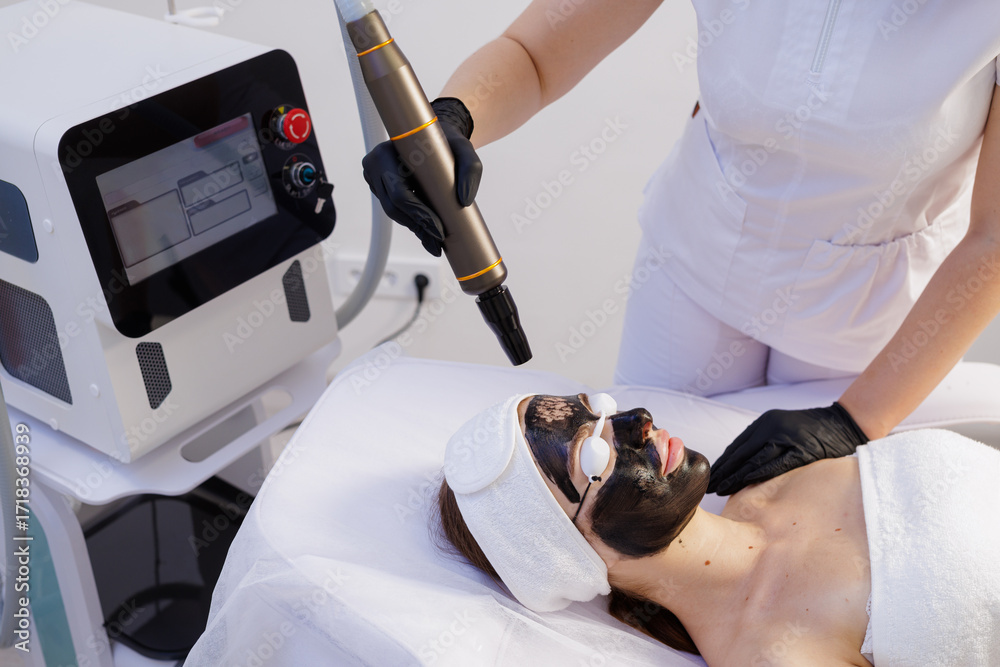 Mother and daughter having imaginary picnic in meadow. Little girl playing with her mom in nature.