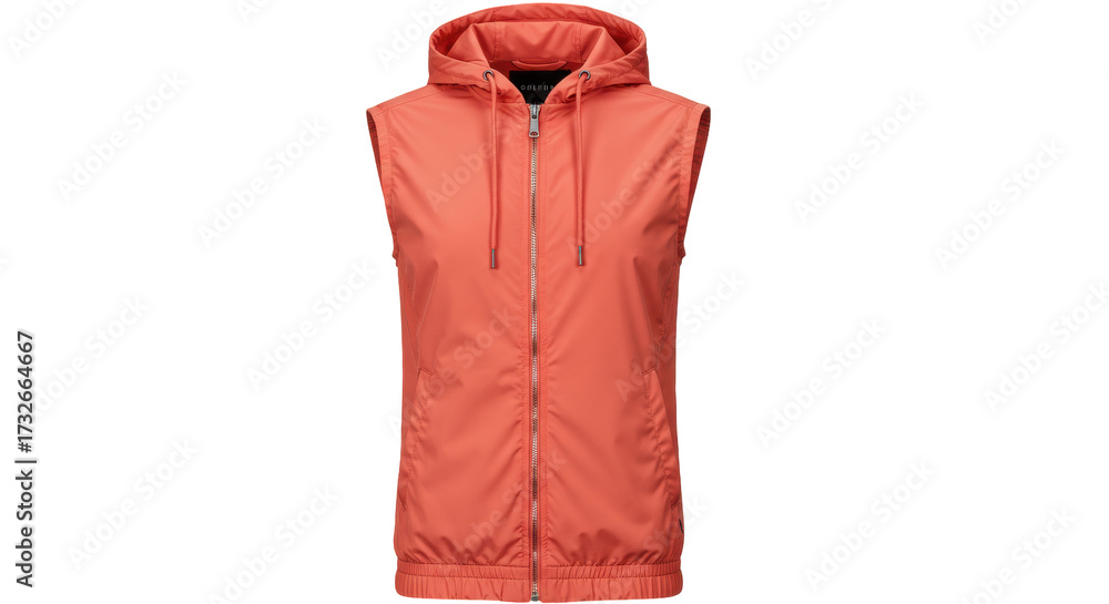 Coral hooded vest isolated on transparent background, sleeveless jacket for outdoor activities and casual wear