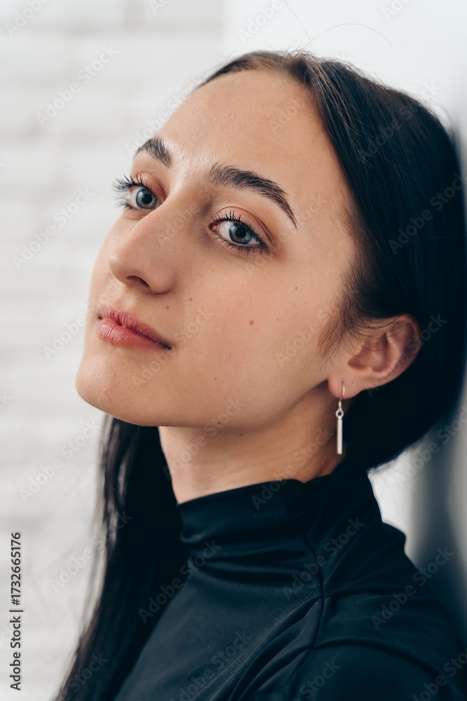 Portrait of young woman with long silver earring
