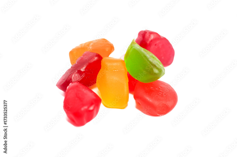 Rich collection of tasty jelly gummy bears, isolated on white background