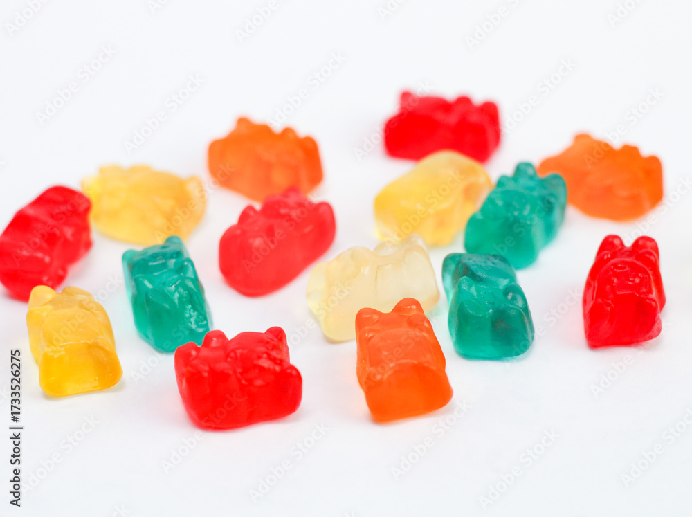 Rich collection of tasty jelly gummy bears, isolated on white background